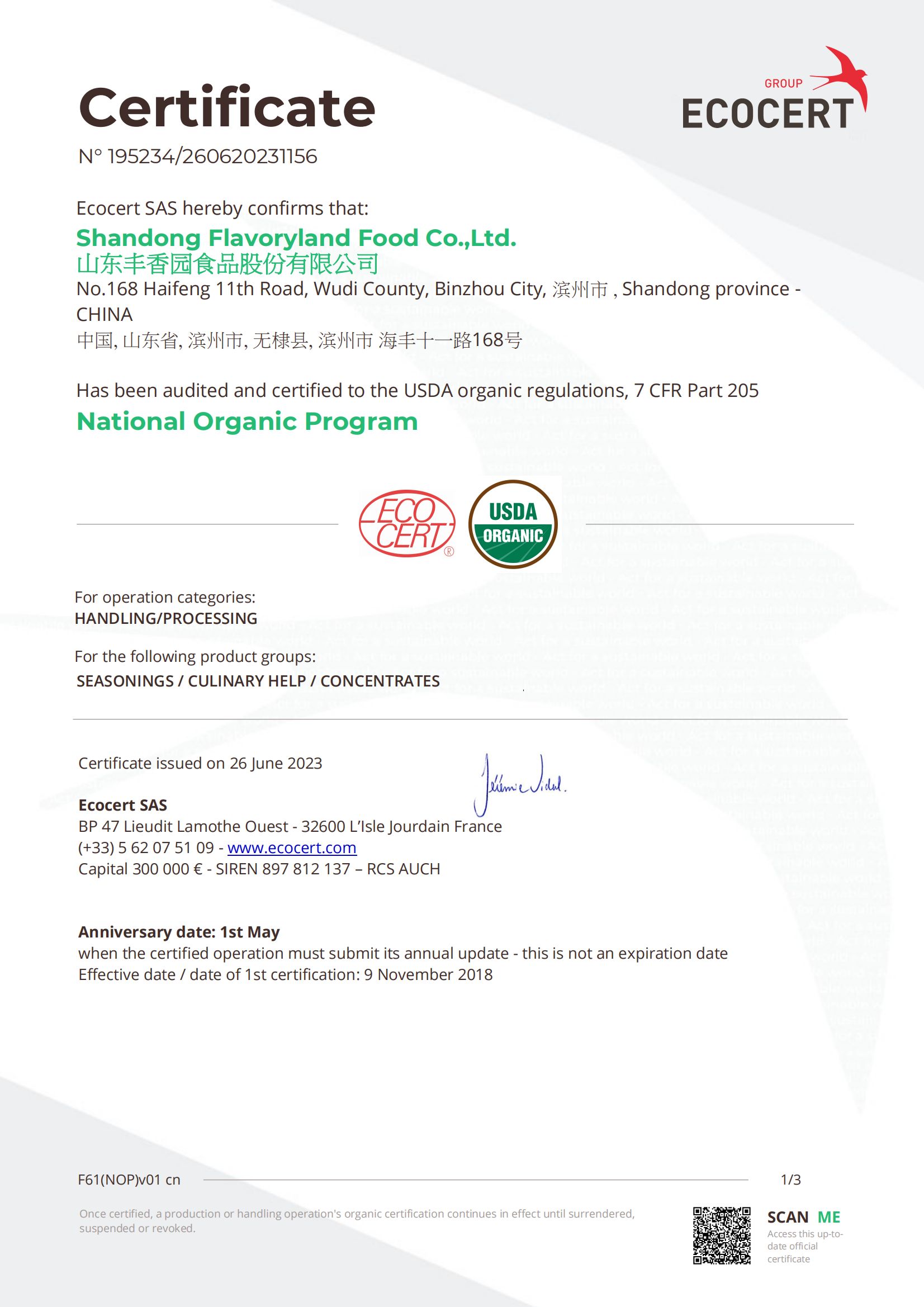 • 美國有機(jī)證書