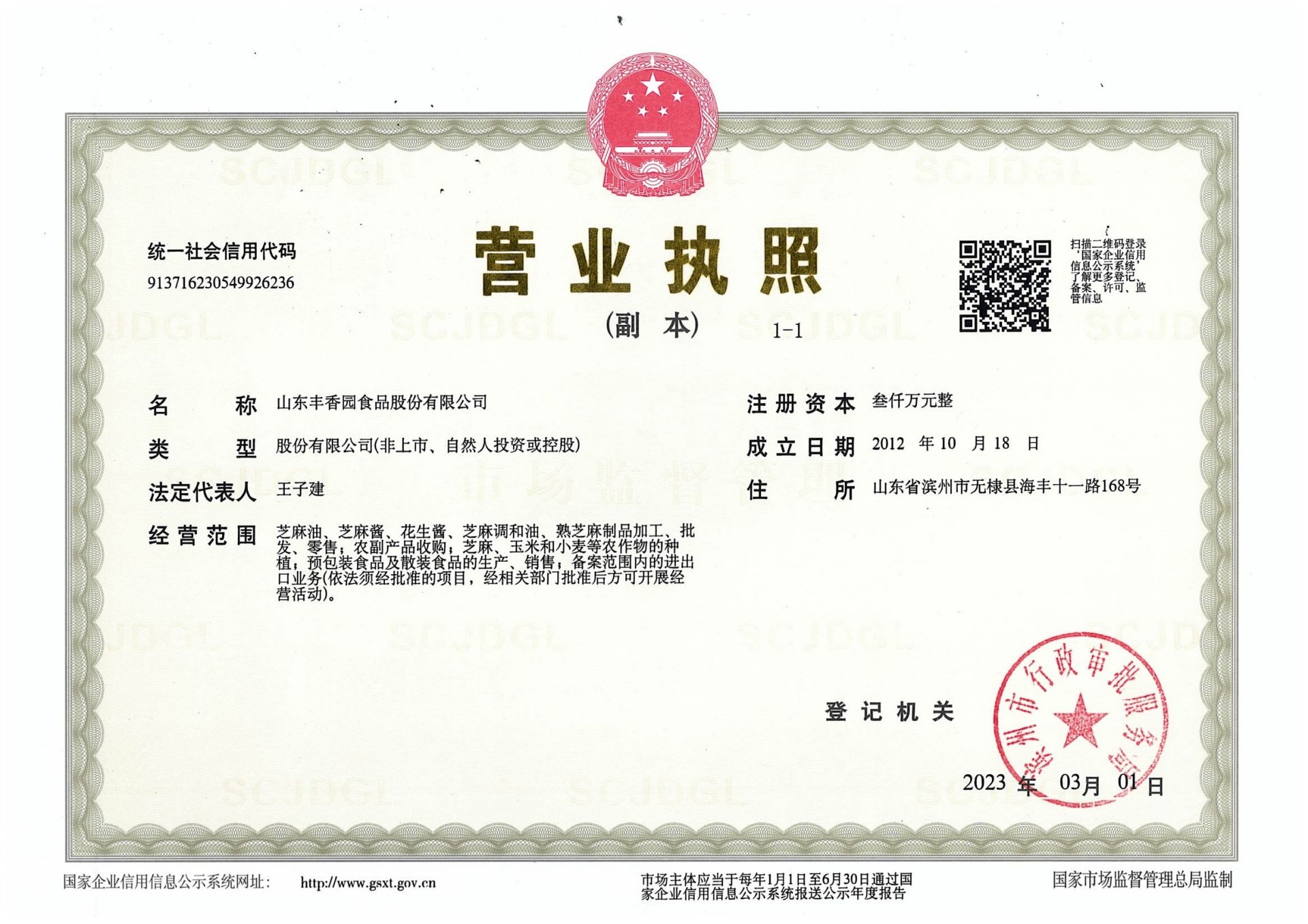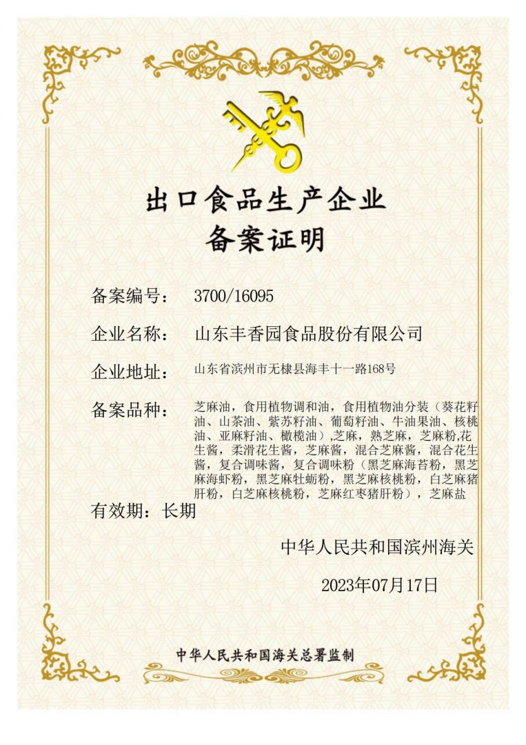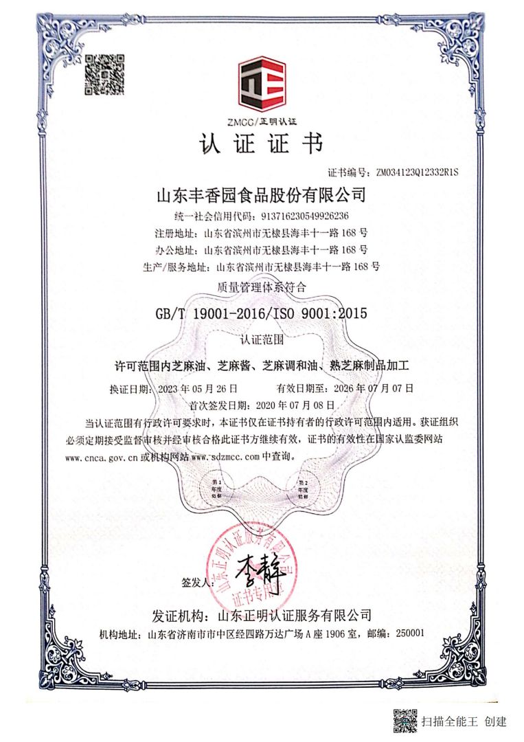 山東豐香園食品股份有限公司位于山東省濱州市無棣縣海豐十一路168號(hào),公司擁有員工50多人,年銷售收入6000多萬元,是華北地區(qū)最大的純正芝麻香油、芝麻食品定制代加工生產(chǎn)、出口基地。 ? ? 豐香園小磨香油、芝麻調(diào)和油、花生醬、芝麻醬、混合醬、熟芝麻制品均已通過英國零售商協(xié)會(huì)BRC認(rèn)證、歐盟 美國和國內(nèi)有機(jī)、HACCP體系認(rèn)證,是山東省出口食品備案企業(yè)。 ? ? 豐香園小磨香油、芝麻香油、芝麻醬以傳統(tǒng)石磨工藝精制而成,從原料進(jìn)庫到成品出廠,經(jīng)過12道工序嚴(yán)格檢測,確保了產(chǎn)品符合國家標(biāo)準(zhǔn)和出口標(biāo)準(zhǔn),讓廣大消費(fèi)者吃的放心,吃的營養(yǎng),吃的健康,豐香園公司致力于打造中國純正芝麻香油、芝麻醬領(lǐng)導(dǎo)品牌。? ? 在歷史和未來之間,“豐香園”一直是純真香油的誠信領(lǐng)導(dǎo)者,豐香園芝麻食品公司用良心磨油,拒絕摻假,每一滴芝麻油都是純正的,被廣大消費(fèi)者頌有“無棣特產(chǎn)黃金油”,“魯北瓊漿”的美譽(yù)。 ? ? 作為中國一家專業(yè)生產(chǎn)小磨芝麻香油、芝麻醬的現(xiàn)代化企業(yè),豐香園芝麻香油秉承“真色、真味、真香”的三真級(jí)行業(yè)新標(biāo)準(zhǔn),始終走在行業(yè)標(biāo)準(zhǔn)的前列。從芝麻采購、驗(yàn)收檢測、生產(chǎn)、包裝、銷售,一體化產(chǎn)業(yè)鏈,真正做到無污染。? ? 豐香園芝麻食品定制代加工產(chǎn)品,已覆蓋山東、兩廣、京津唐、東北及華南地區(qū),出口到日本、韓國、及東南亞等國家和地區(qū)。