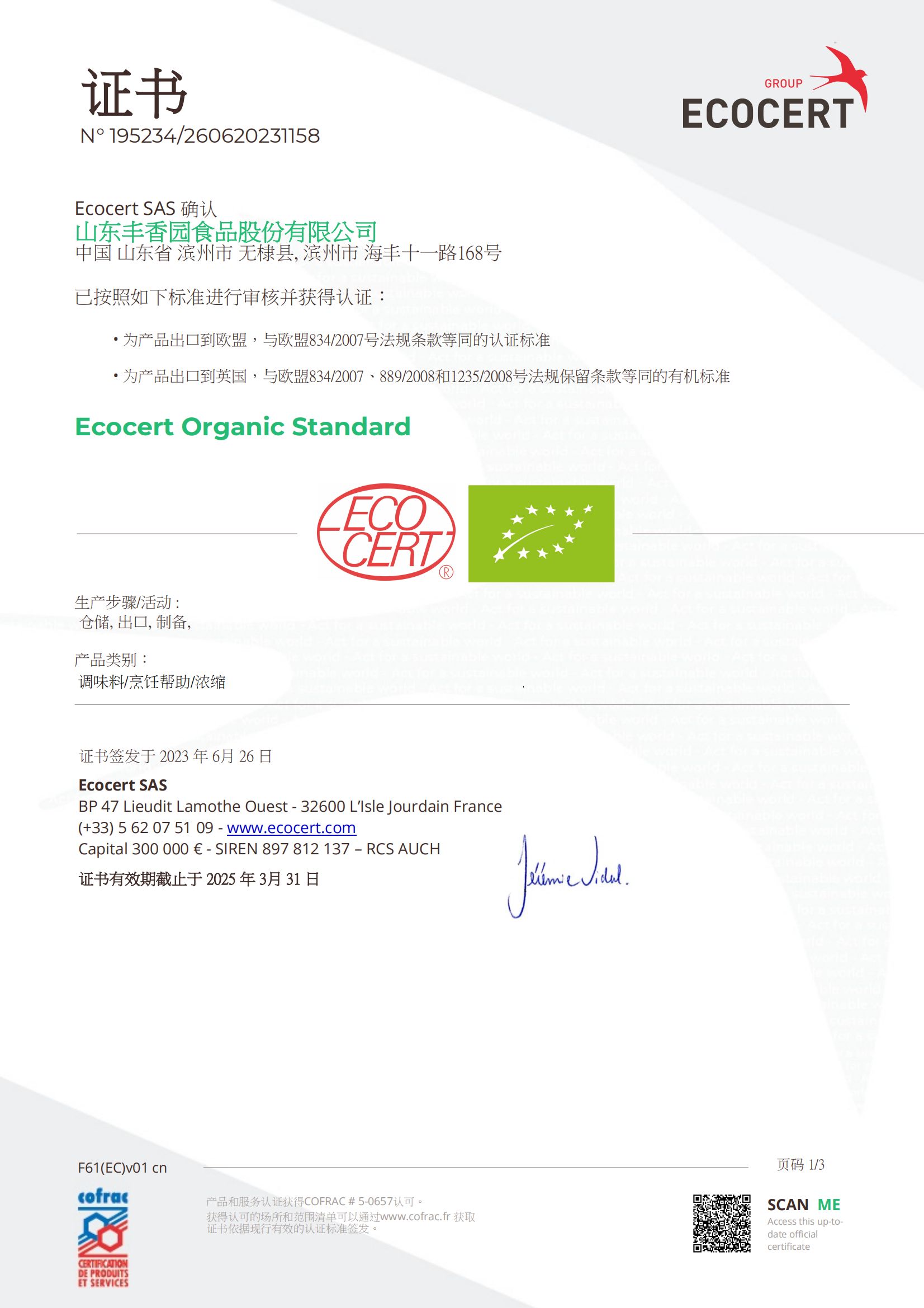 • 歐盟有機(jī)證書